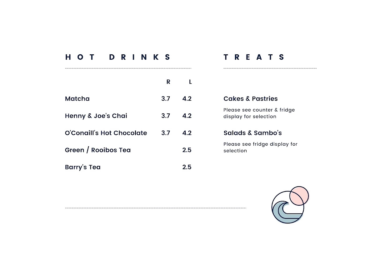 The layout of the menu supports quick ordering for those stopping by for a coffee or snack, with options that cater to both individual and casual dining experiences.